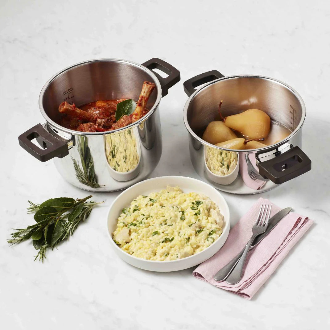 Elevate your culinary repertoire with the Essteele Per Velocità pressure cooker, an innovative kitchen essential that not only promises to cut cooking time by up to 45% (compared to regular pots) but also amplify flavours and preserve essential nutrients.
