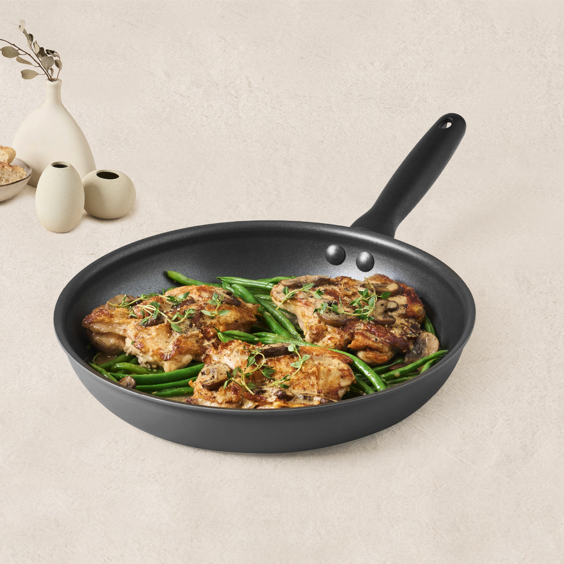 Designed for everyday meals, the extra-wide base gives you more room to cook, while the flared rim makes pouring and serving effortless.