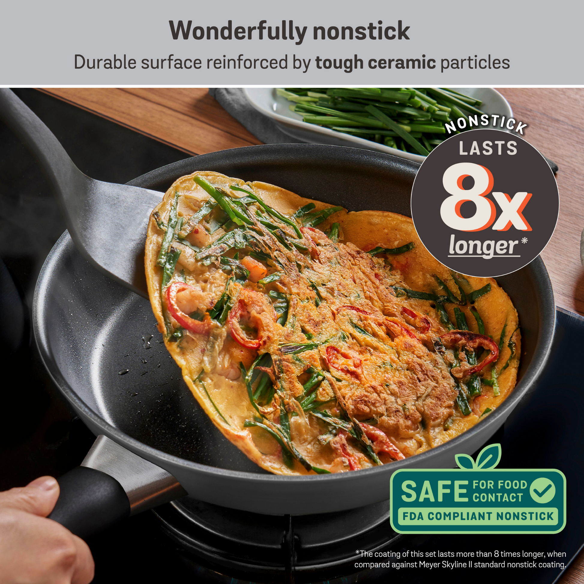 - LONG-LASTING NONSTICK: Reinforced with ceramic particles for smooth, easy food release.