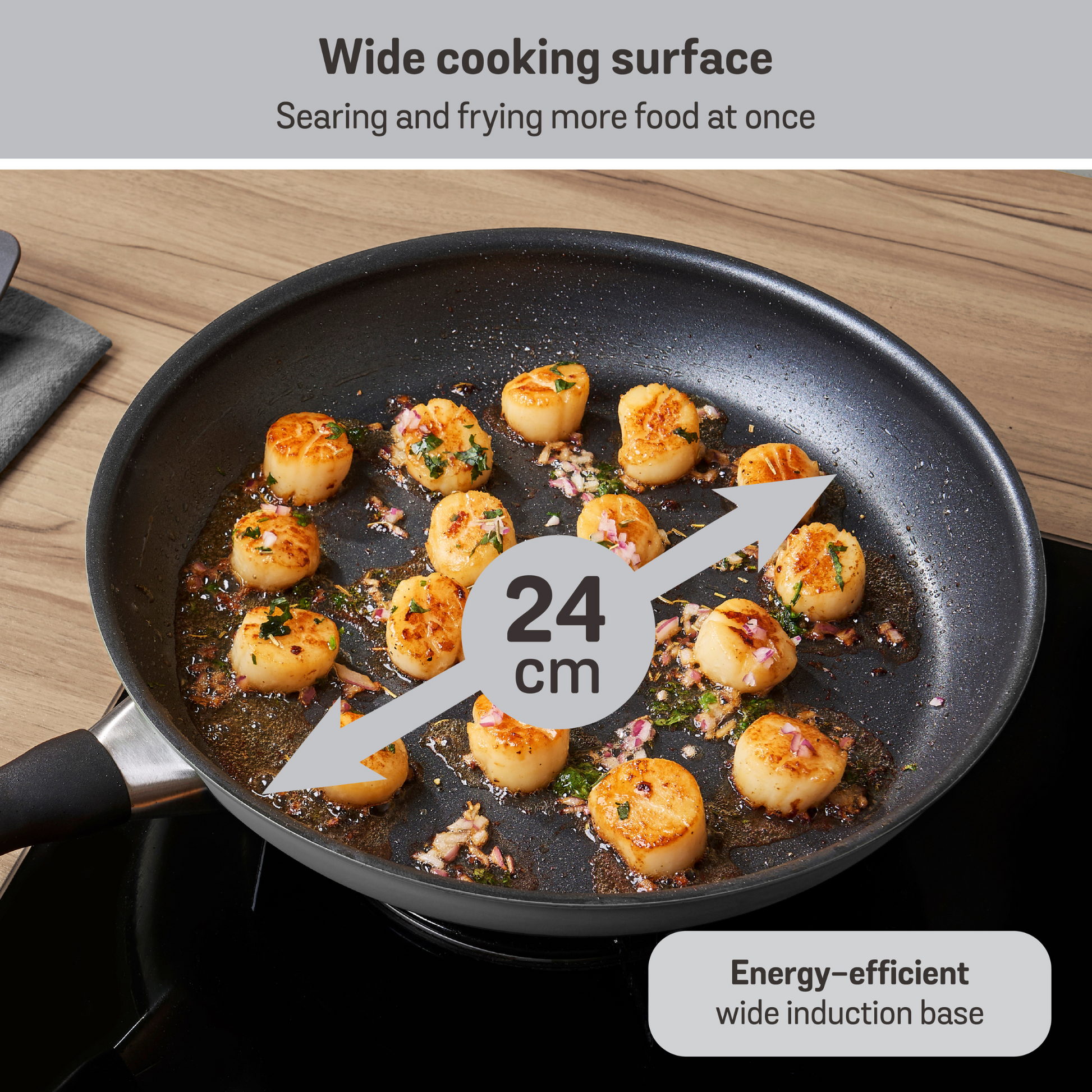 - INDUCTION READY, OVEN SAFE TO 180°C, AND DISHWASHER SAFE.