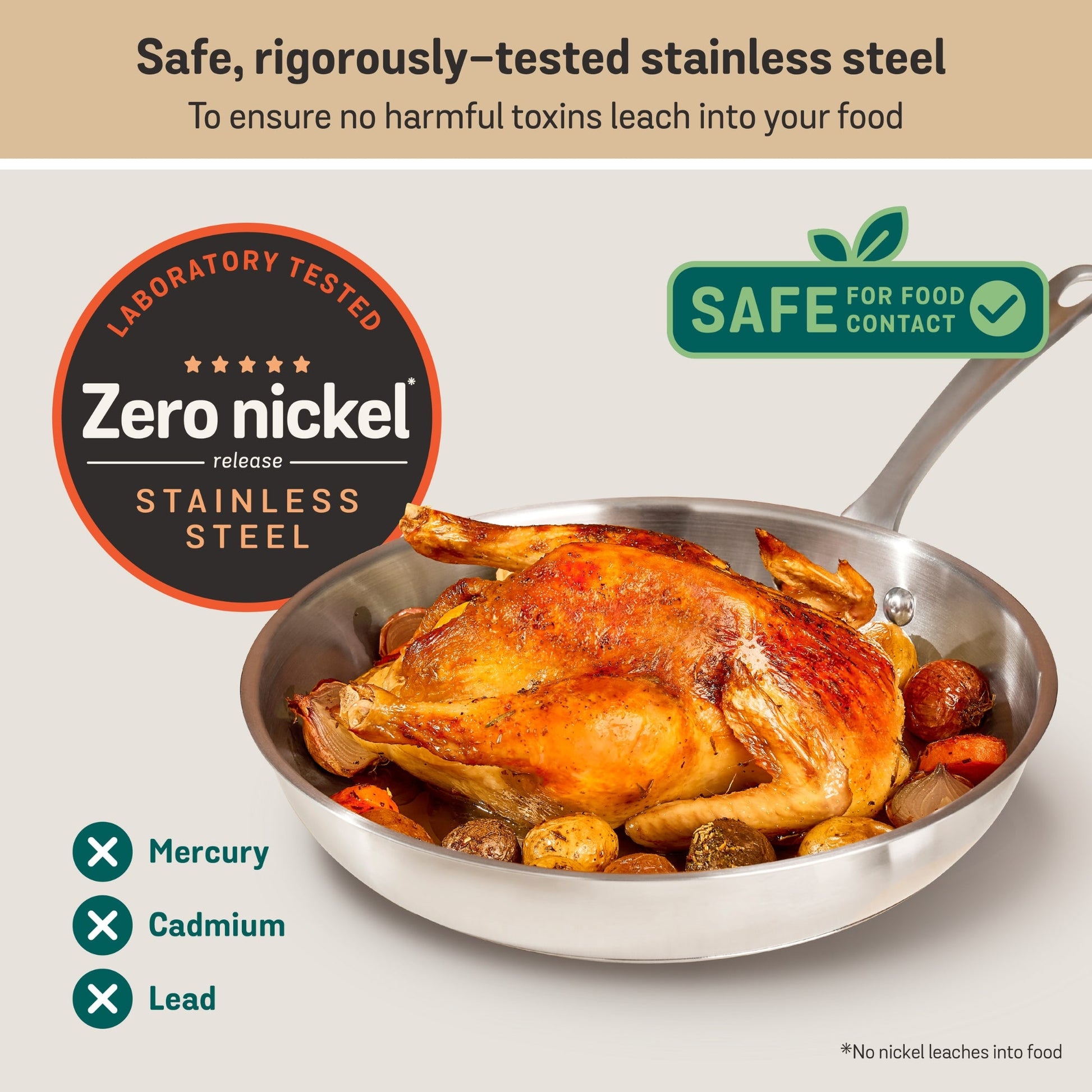 SAFE, RIGOROUSLY-TESTED STAINLESS STEEL: Zero Nickel release surface for peace of mind.