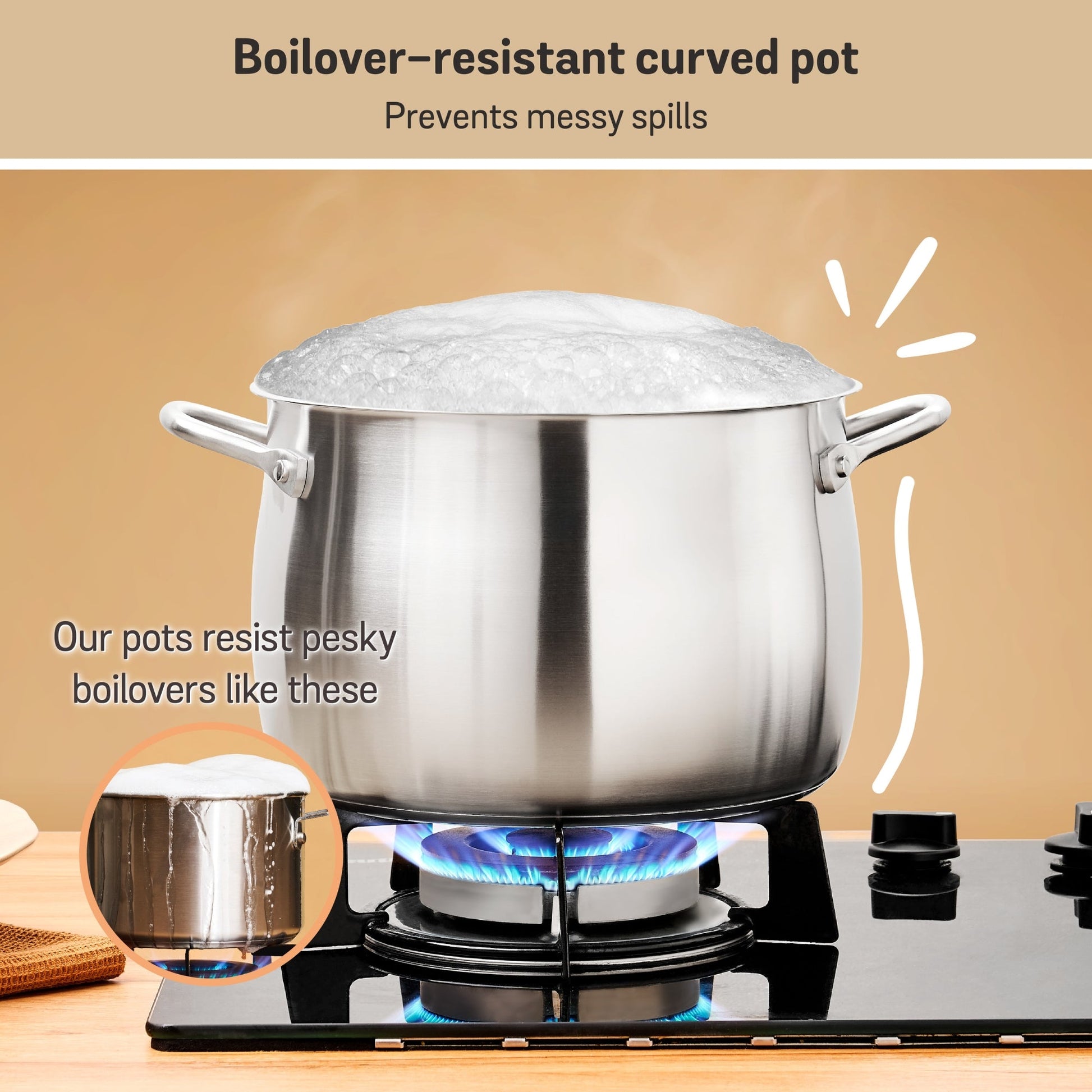 BOILOVER RESISTANT CURVED POT: Prevents messy spills.