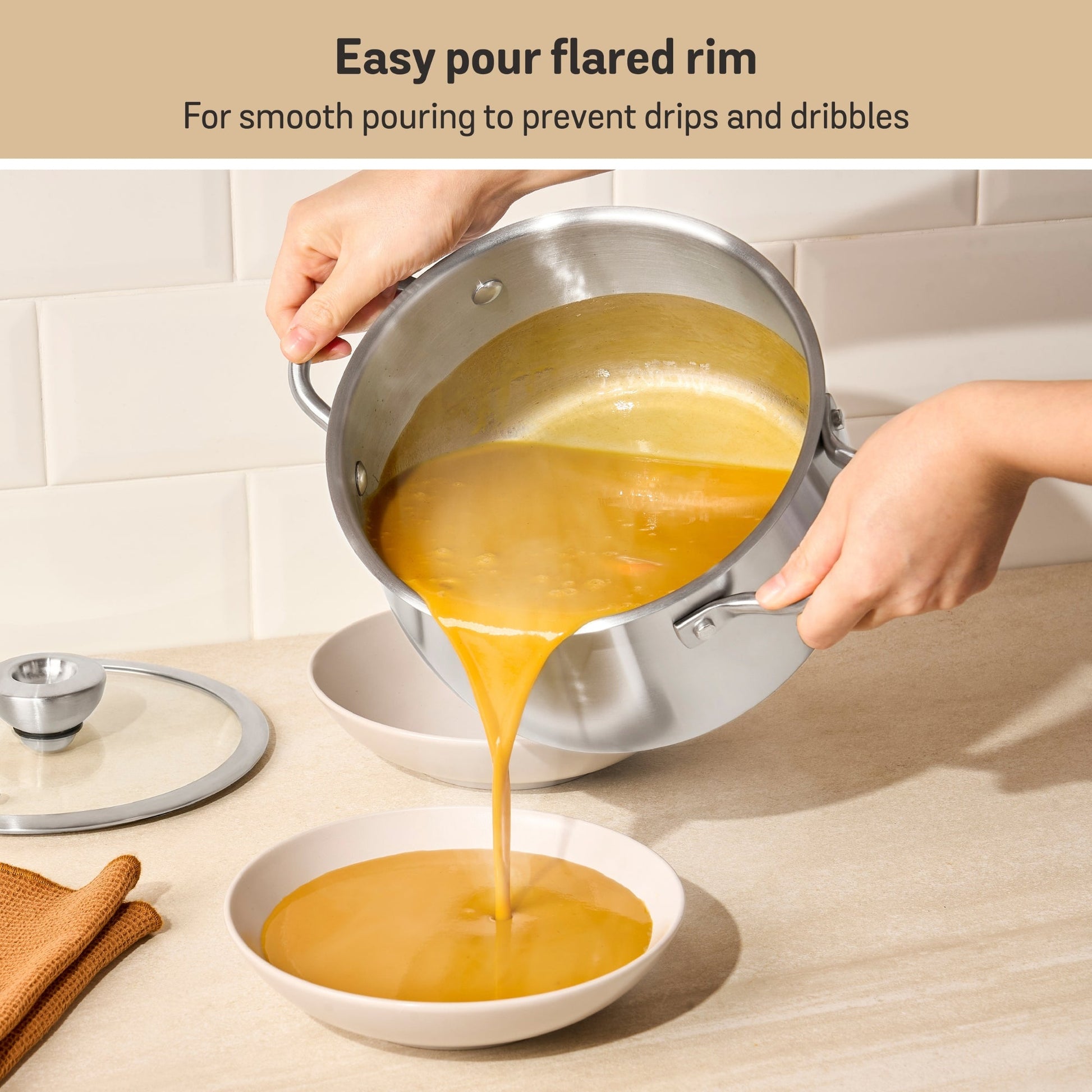 Its thick 3-ply induction base distributes heat quickly and evenly while resisting warping, making it perfect for searing, frying and everyday meals. With an impressive heat resistance of up to 315°C, it’s ready for stovetop or oven use.