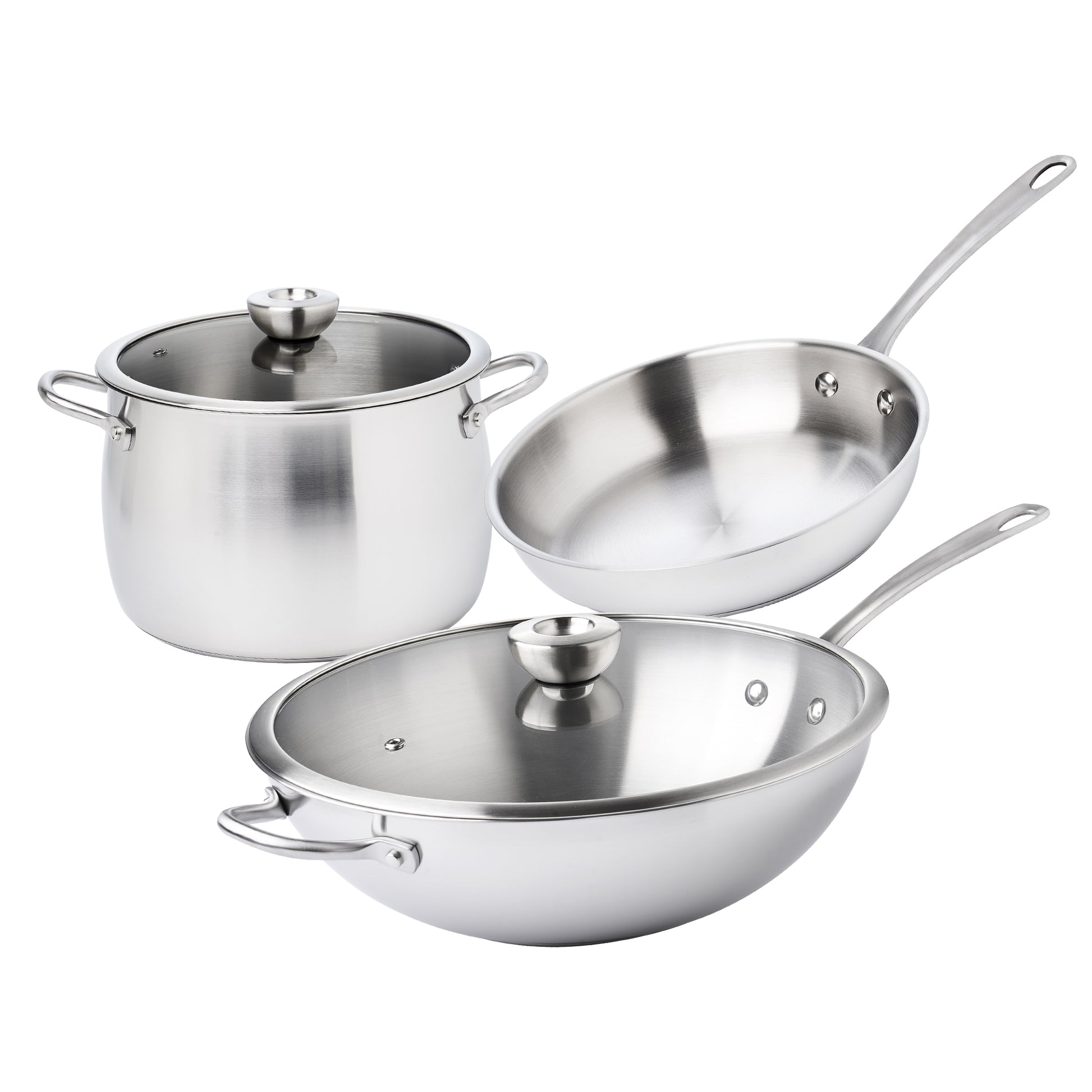 The Meyer White Steel Stainless Steel Induction 3 Piece Complete Set is designed to be strong, safe and suitable for high-heat cooking. Laboratory tested Zero Nickel release Stainless Steel, it is designed to perform well under pressure while helping you to cook healthy and without worry.