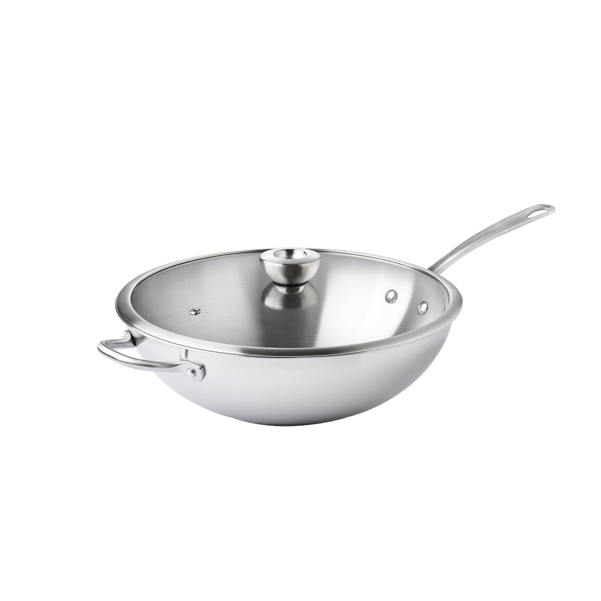 Meyer White Steel Stainless Steel Induction Stirfry With Glass Lid 32cm