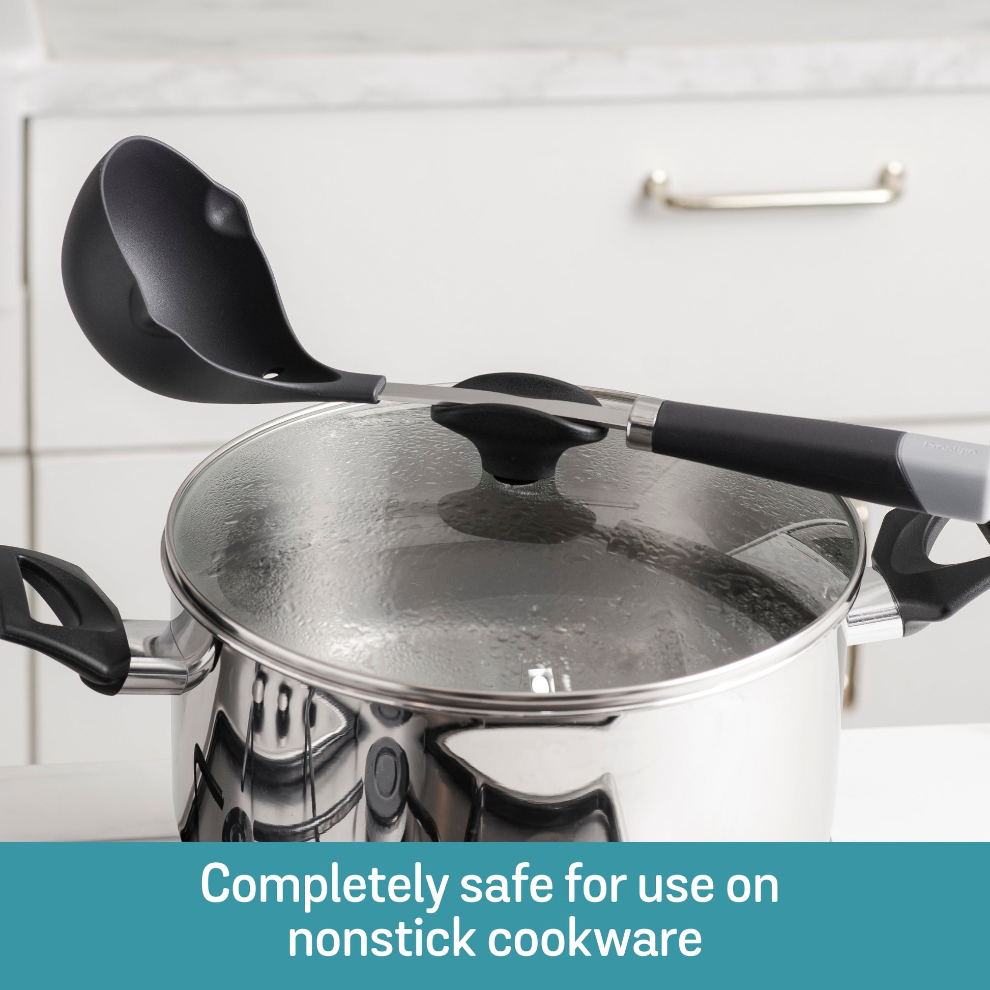 Looking to upgrade your Kitchen Utensils? Meet the Easy Prep Ladle, its seamless design glides through soups and sauces, while dual pouring lips make serving from either side a breeze. Safe for use on all Nonstick Cookware.