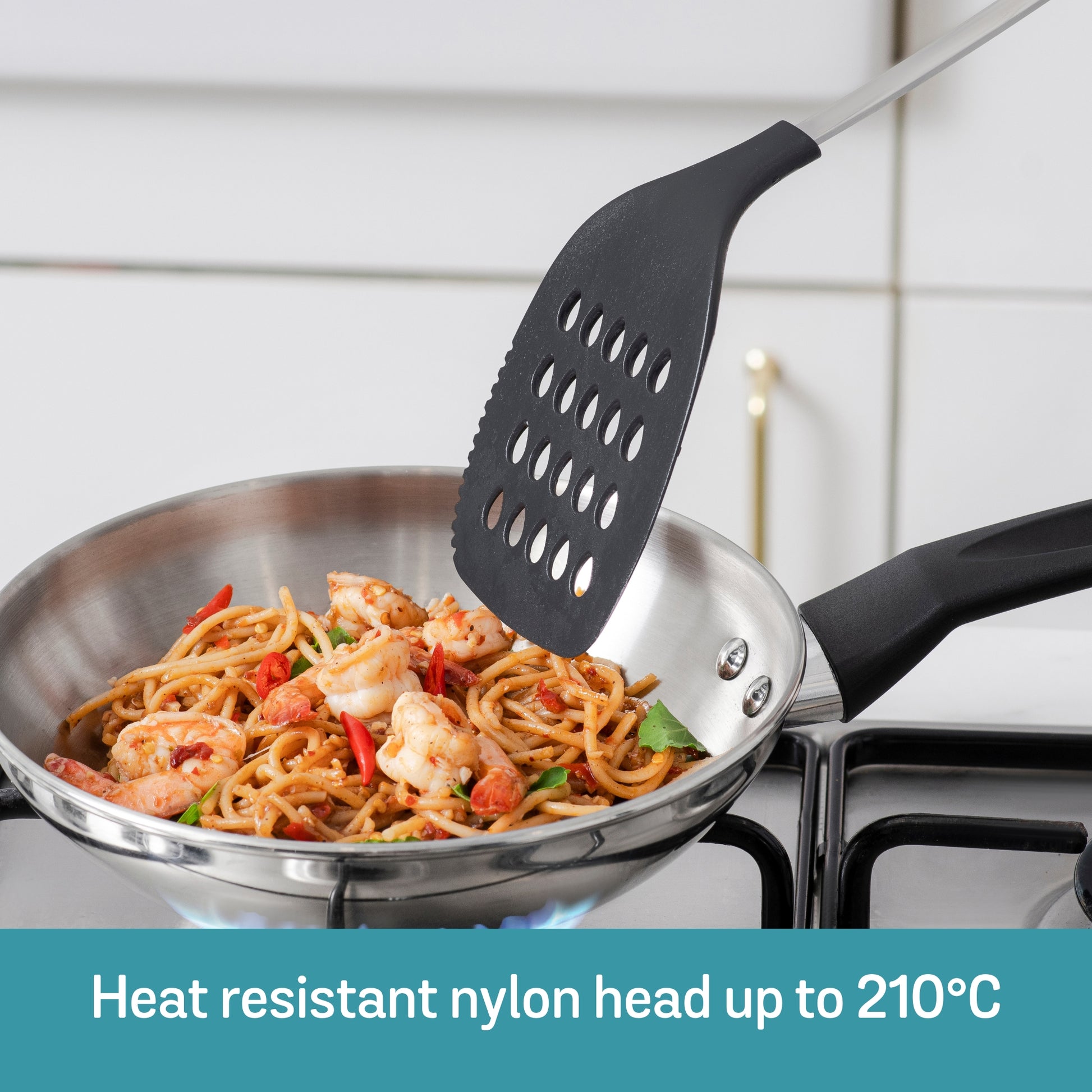 Looking to upgrade your Kitchen Utensils? Meet the Easy Prep Slotted Turner, a smart kitchen tool designed to flip, lift and slice with ease. Safe for use on all Nonstick Cookware.
